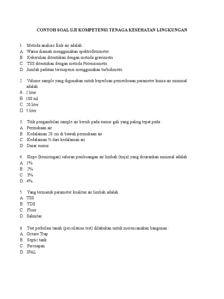 Contoh Soal Uji Kompetensi Tenaga Kesehatan Lingkungan Pdf